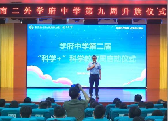 金秋十月,学府中学迎来第二届“科学+”科学教育周。10月27日,活动启动仪式在学校隆重举行,全校师生齐聚校园,共同开启为期一周的科学探索之旅。本届教育周以“探索科学奥秘,点亮成长星光”为主题,设计了涵盖科学展览、实践研学、专家讲座、实验观摩和科技竞赛等多元活动,旨在全面提升学生科学素养。