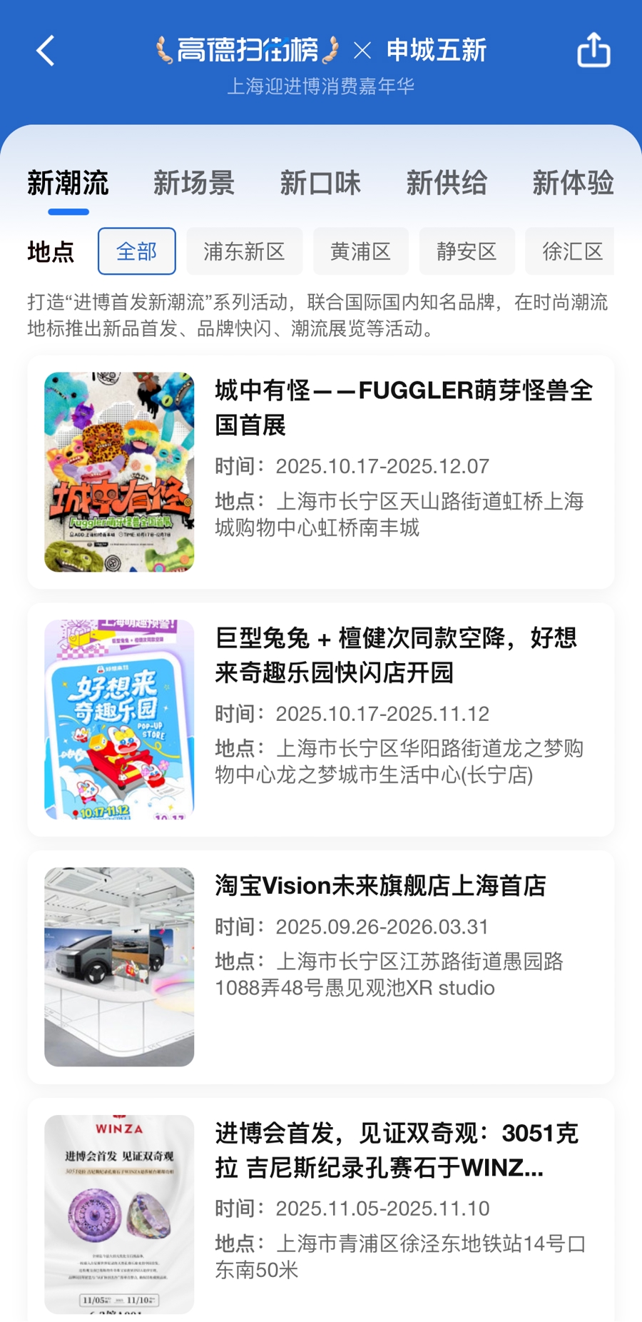 据了解,“申城五新”生活服务消费榜单,由上海市商务委“申城五新”参与的商家和主题活动,经由高德扫街榜综合评分形成,榜单将官方活动和扫街榜综合评分相结合,从全新视角向广大消费者进行推荐。榜单不仅涵盖了进博会新品首发、国货潮品快闪等时尚活动,还整合了离境退税服务网点及信用评分,为境外游客提供便利消费指南。