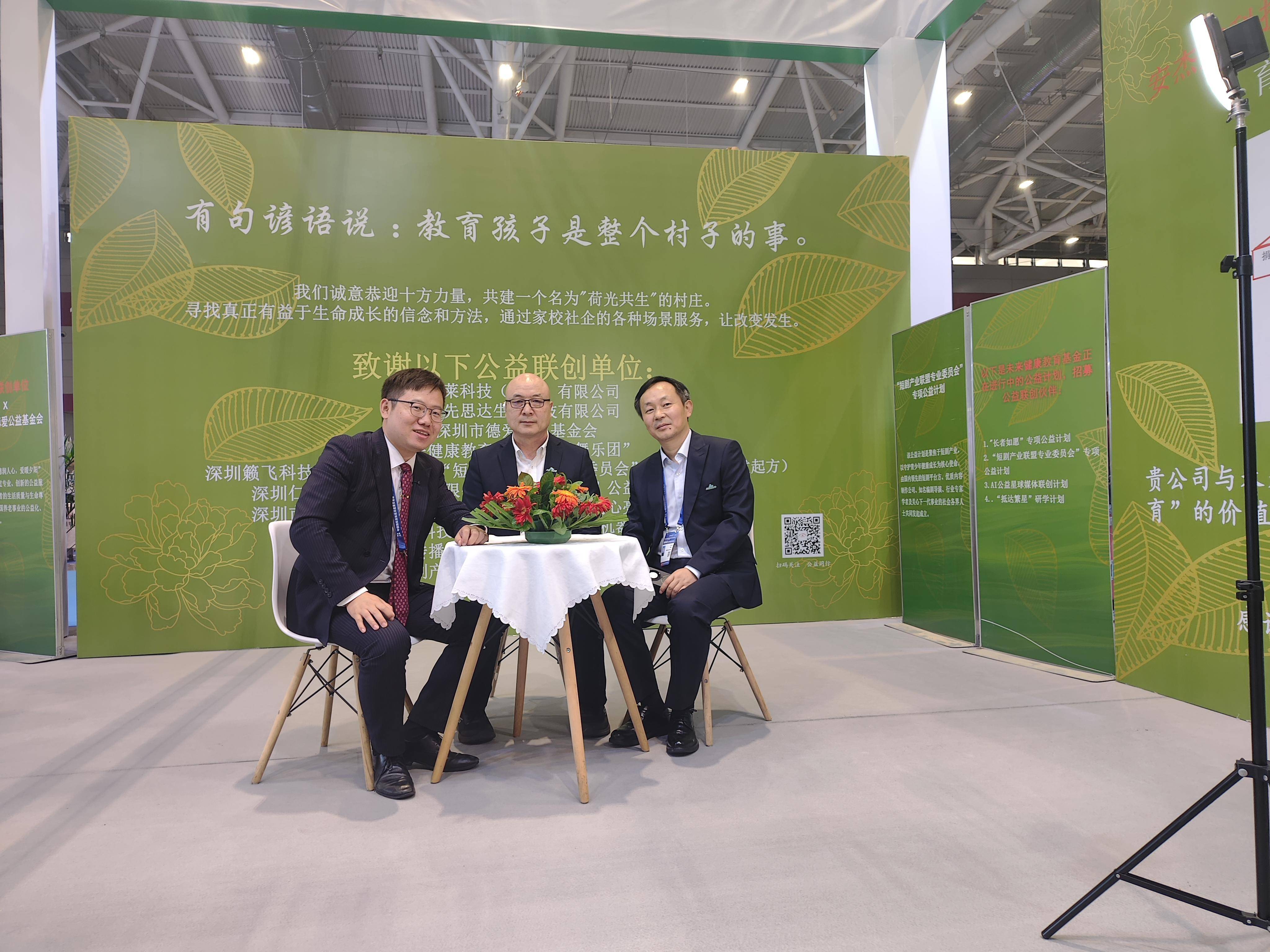 深圳商报·读创客户端记者周良成(左)在高交会上专访安杰莱科技董事长李鲁亚(中)等企业高管安杰莱科技董事长李鲁亚告诉记者,这些机器人能够用AI算法动态调整个性化方案,帮助偏瘫患者进行肌骨康复、重症康复、老年康复等。