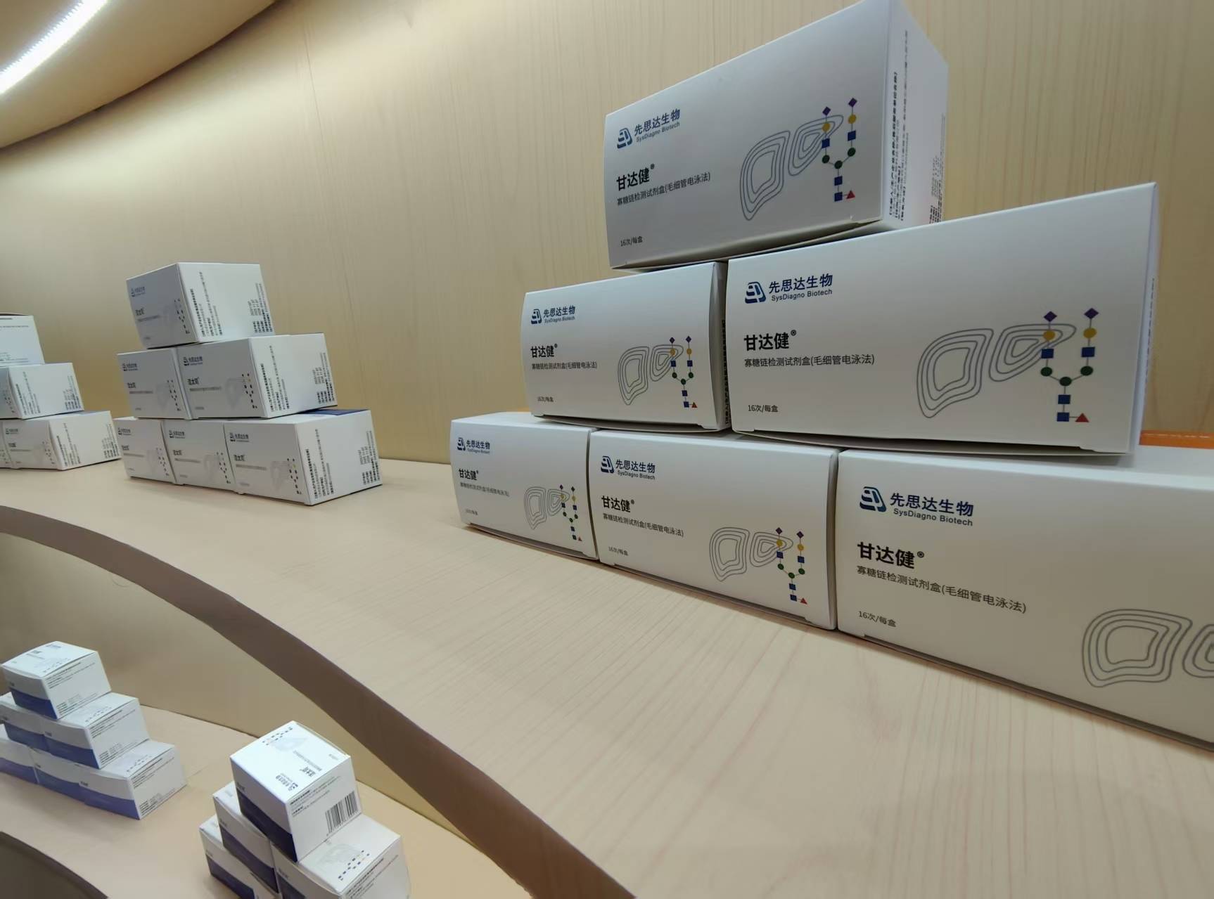 先思达生物在高交会上的展品“甘达健”等。周良成/摄先思达生物创始人、董事长陈萃英告诉记者,糖链是继核酸、蛋白质之后推动未来医学发展的“第三条生命链”——超过70%的蛋白质需要糖基化修饰才能正确行使功能。“糖质组学揭示了生命活动中糖链结构与疾病发生发展的关键联系。”